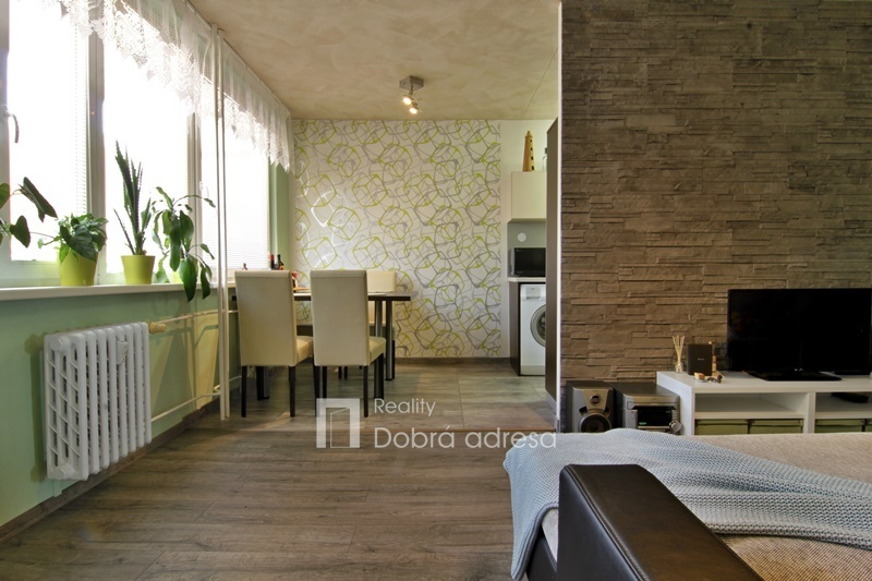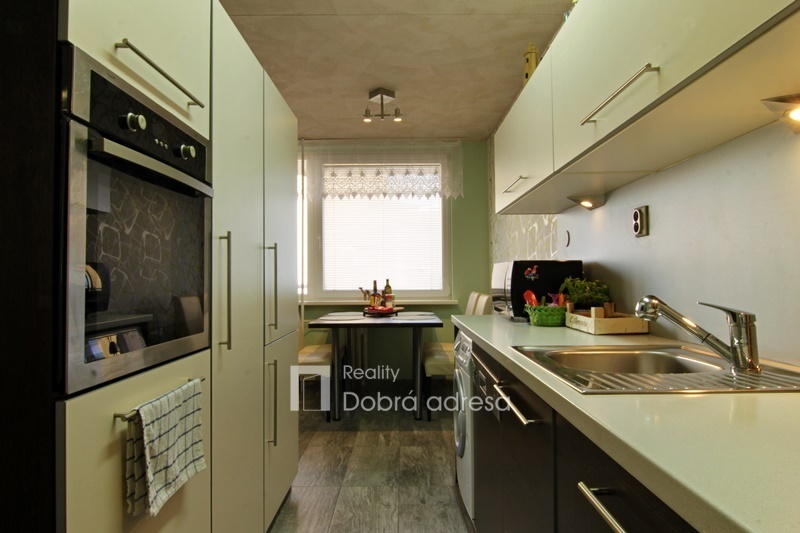 Exkluzivně nabízíme k prodeji hezký panelový byt 3+kk s lodžií v Praze 9. Spolu s výbornou dispozicí a vkusně provedenou rekonstrukcí bytu je hlavní výhodou nabídky zejména umístění domu na kraji sídliště v blízkosti parku, venkovních sportovišť a několika rybníků. Byt je rozdělený do dvou křídel. V levém společenském křídle najdeme obývací pokoj volně propojený s moderní kuchyní a jídelním koutem. Obě místnosti po celé šířce lemuje jižně orientovaná lodžie. V pravém odpočinkovém křídle je dětský pokoj a manželská ložnice. Centrální části bytu dominuje prostorná hala s komorou a sociálním zázemím. Nový majitel ocení také velký zděný sklep v suterénu domu, jakož i možnost využití dalších společných prostor - kočárkárny, sušárny a domovní klubovny/posilovny.