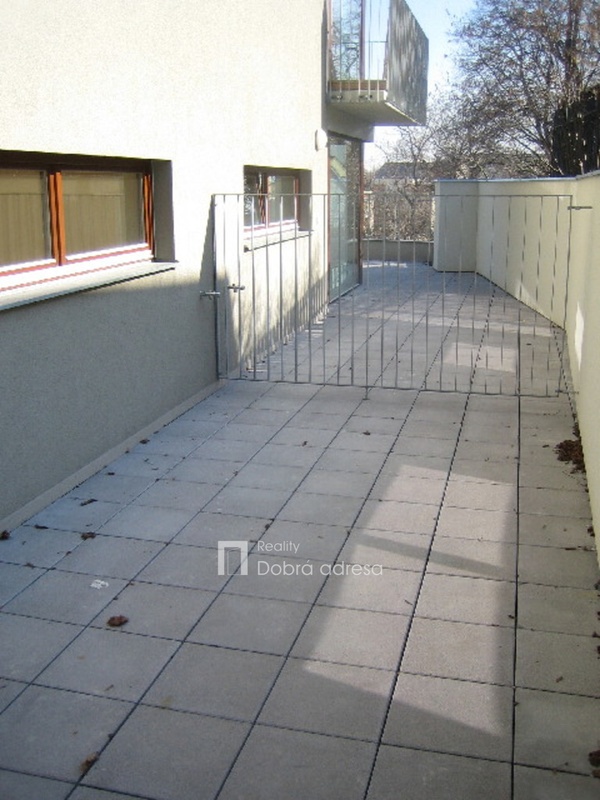 Nabízíme k projedi byt typu 3+kk o výměře 69 m2 + 18 m2 terasa v residenční moderní vile, se šestnácti byty ve I.NP ve Starých Hrdlořezech, postavené roku 2009. Bytová jednotka je velice prakticky dispozičně řešena, obsahuje dostatek úložných prostor a je velmi moderně řešena s nadstandardně použitými materiály a jednotlivými prvky vybavenosti. Byt je vybaven nadstandardními zařizovacími předměty, vytápění je etážové na plynový kotel, dřevěné podlahy světlý dub, dřevěná EURO okna s tep. koef. 1,1, velice vkusně navrženy obklady a dlažby, ohřev TUV je kombinací plyn. kotle a elektřiny, dveře s obložkami a elegantním kováním SAPELI, příprava pro kuch. linku, příprava pro osazení vekovních bezp. žaluzií, domácí videotelefon, terasa, vymývaná dlažba. Dispozice: pokoj - 17,41m2, pokoj - 12,49m2, pokoj - 11,34m2, kuchyně - 9,59m2, chodba - 8,49m2, kotelna - 3,61m2, koupelna - 4,16m2, WC - 1,51m2, terasa - 18,28m2, garážové stání. Příspěvek do fondu oprav + poplatky za služby = 1.780,- Kč. Společné části domu jsou velice nadstandardně vybaveny, je zajištěn bezbariérový přístup do všech bytů a to i z moderního výtahu, který má vstup i výstup dokonce i v mezipatrech. V I.NP domu jsou umístěny garáže pro jednotlivé vlastníky bytových jednotek pod zabezpečením a el. ovládanou hlavní bránou na parkoviště před domem a el. ovládanými roletovými garážovými vraty. Už z garáží je možno přímo do každého bytu zajet výtahem.