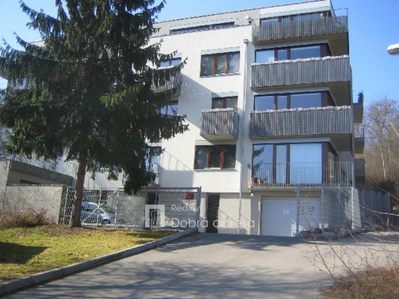 Celý pozemek okolo rezidenční vily je oplocen pevným kovovým oplocením s vjezdovou bránou na DO. Dům byl postaven před čtyřmi lety a všech 16 bytových jednotek bylo v krátké době rozprodáno. Samotná rezidenční vila je postavena v nenápadné vedlejší ulici obklopené zelení, kde velké prosklené plochy bytu, zejména obývacího pokoje a k němu přilehlé prostorné (18,5m2) terasy umožňují trvalý a přímý kontakt s okolní bohatou zelení. Přímo naproti domu je park.