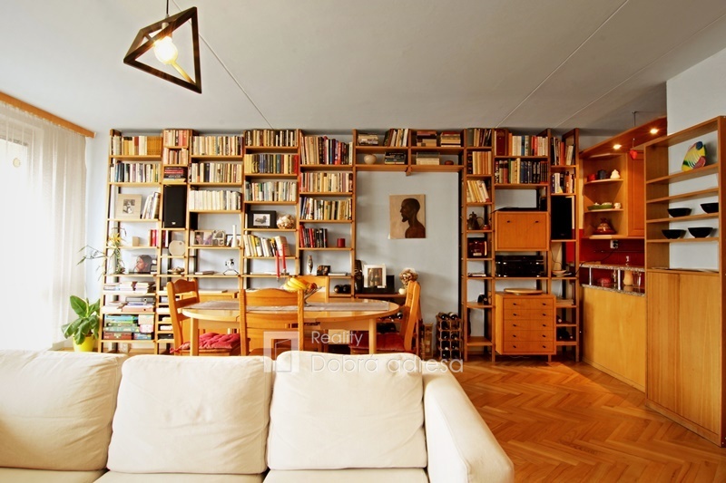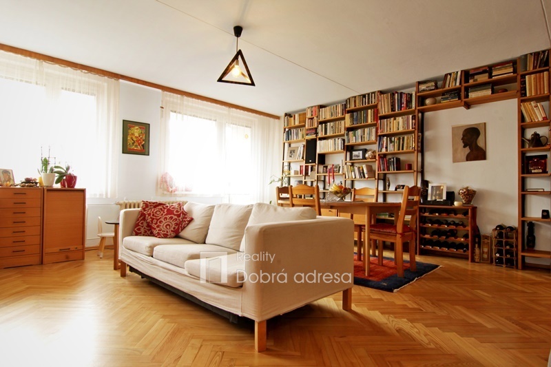 Exkluzivně nabízíme k prodeji prostorný panelový byt 3+kk s lodžií v klidné části Prahy 3, Jarov. Hlavními přednostmi nabídky jsou velkorysá podlahová plocha bytu, inteligentní uspořádání místností umožňující využít veškerou plochu jednotky a v neposlední řadě klidná lokalita s vynikající dostupností do centra města. Byt je rozdělený do dvou křídel. V levém obytném křídle bytu najdeme světlý obývací pokoj s kuchyňským koutem (40 m2), který po celé šířce kopíruje prostorná lodžie (7,7 m2). Plocha lodžie není započítána do uvedené výměry bytu. V pravém odpočinkovém křídle bytu se nachází dvě ložnice, resp. ložnice a dětský pokoj. Středu bytu dominuje zádveří. Kromě tří obytných místností najdeme v bytě také velkou vnitřní komoru, koupelnu a toaletu. Nový majitel rovněž ocení zděný sklep a možnost uložení kola či kočárku ve společné kolárně.