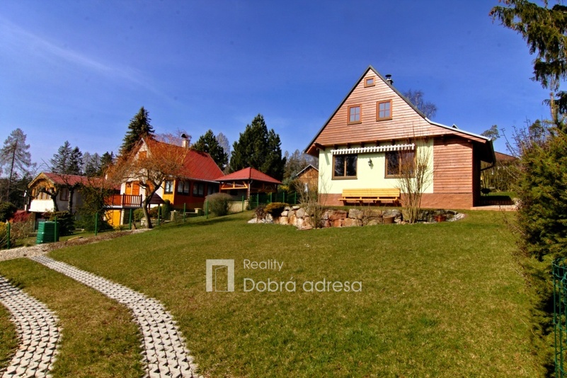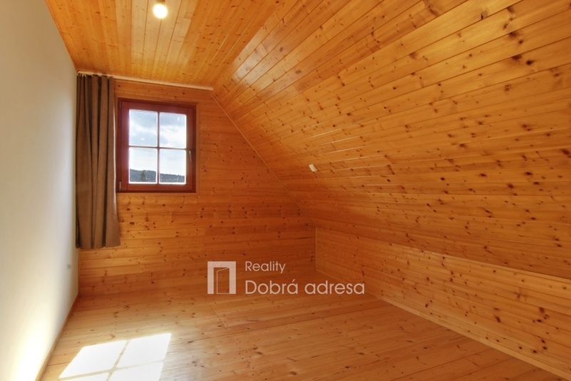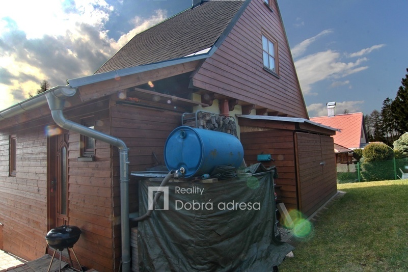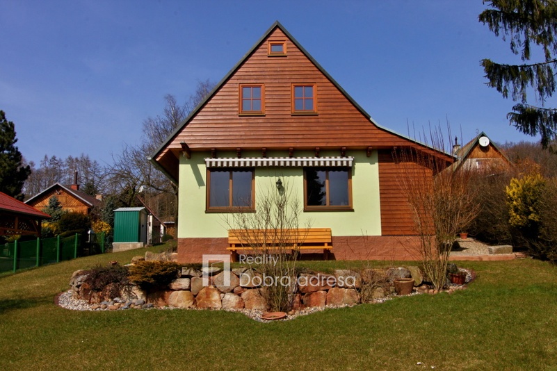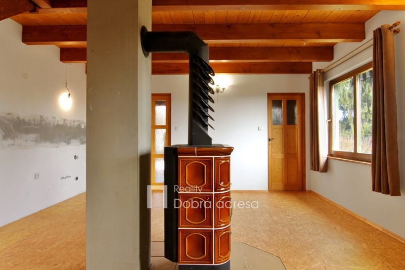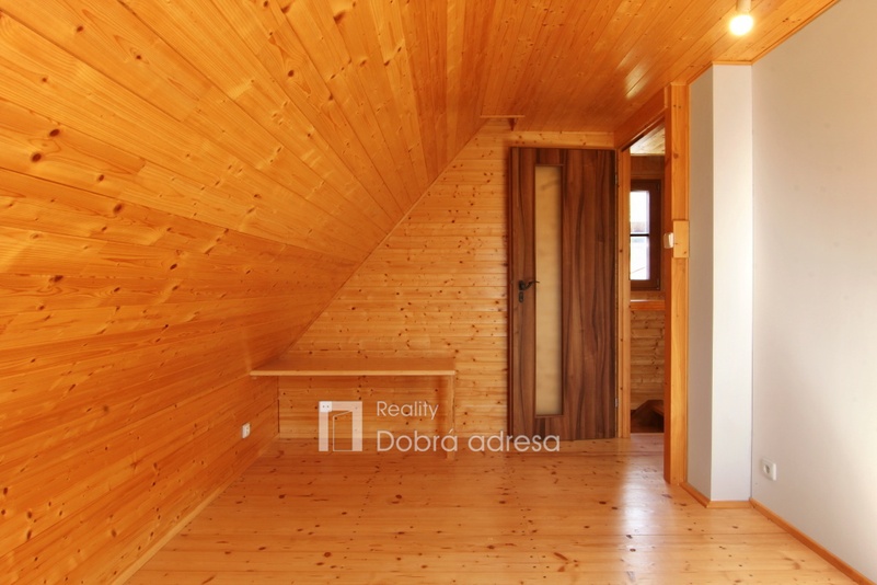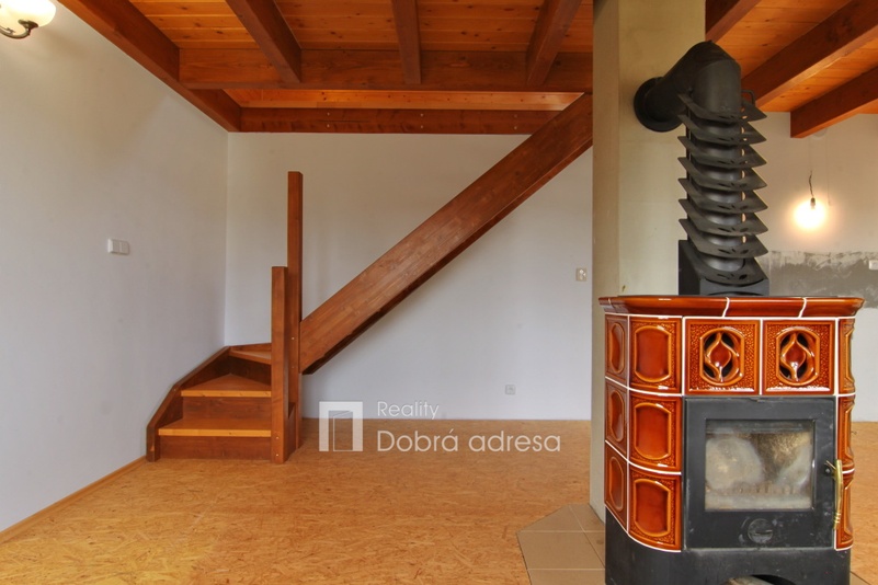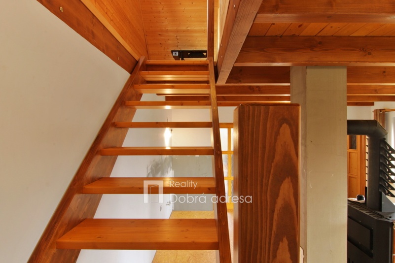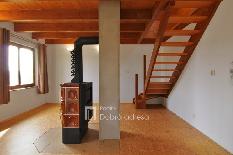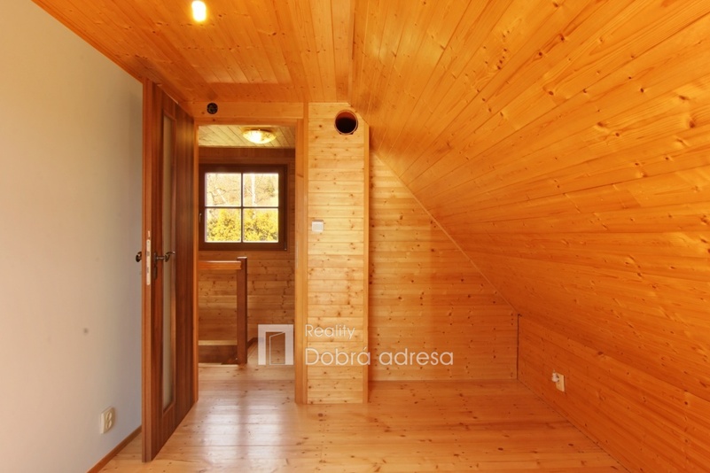 Exkluzivně nabízíme k prodeji nově postavenou rekreační chatu o dispozici 3+kk v blízkosti obce Třeskonice, okres Louny. Hlavními přednostmi nabídky jsou klidná lokalita v srdci přírody, vynikající technický stav nemovitosti – stavba dokončena v roce 2015 a dobrá dojezdová vzdálenost do Prahy. Zastavěná plocha domu činí 37 m2, vnitřní užitná plocha je pak řádově dvojnásobná. V přízemí domu najdeme obývací prostor s přípravou na kuchyň, koupelnu a samostatné WC. V 1. patře domu se nachází dvě ložnice a vstup do podkroví, sloužícího jako úložný prostor. Další úložný prostor na kola, zahradní nábytek atp. o výměře cca 5 m2 pak nabízí uzamykatelný dřevník za domem. Jeho plocha není započtena do zastavěné plochy domu. Dům je také částečně podsklepený. Nemovitost je kompletně elektrifikovaná (220 V i 380 V) a má vlastní zdroj užitkové vody – vrtanou studnu. Teplo v chladných měsících zajišťují kamna na tuhá paliva, která je možno napojit na tepelný výměník a radiátory. K domu patří upravená zahrada o výměře 362 m2. Na pozemku je parkovací stání pro dva vozy. V případě zájmu je také možné se s prodávajícími domluvit na dokončení a finální podobě kuchyně a koupelny.