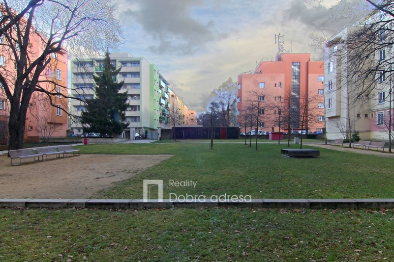 Byt se nachází ve starším činžovním domě v lokalitě s kompletní občanskou vybaveností. V docházkové vzdálenosti od domu najdeme prodejnu potravin, lékárnu, poštu i banku. Tři stanice jízdy tramvají je velkoprodejna Kaufland. V bezprostředním sousedství je sportovní areál s plaveckým bazénem Pražačka a populární park Židovské pece. Spojení do centra zajišťuje několik tramvajových linek včetně noční linky č. 98.