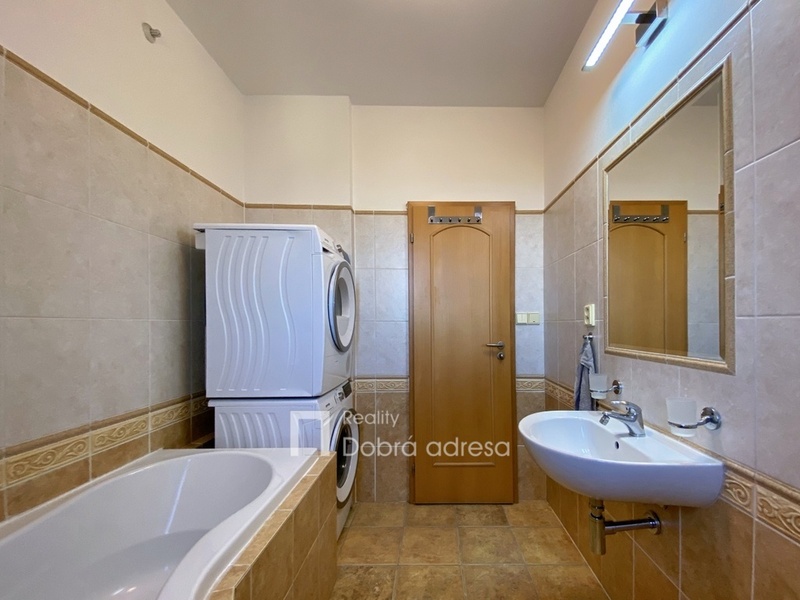 K dlouhodobému pronájmu nabízíme moderní cihlový byt 3+kk s balkónem v klidné části Prahy 4, Újezd u Průhonic. Hlavními přednostmi nabídky jsou dobrá dispozice bytu s dostatkem úložných prostor, vlastní parkovací stání v podzemní garáži a sklep. Budoucí nájemce také ocení, že byt je kompletně zařízený nábytkem i spotřebiči, včetně pračky a sušičky. Ve společných prostorách domu je nájemníkovi k dispozici také kolárna. Před zařazením do nabídky byl byt vymalovaný a uklizený a je připravený na předání novému uživateli. Měsíční náklady na energie a služby činní 7000 Kč.