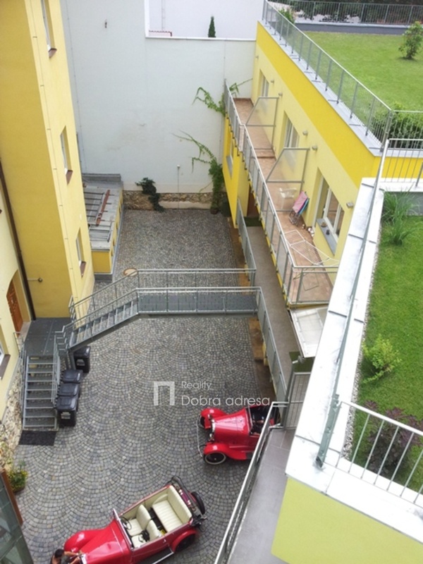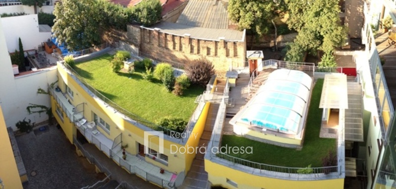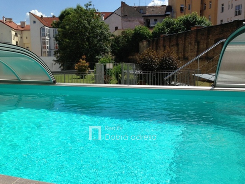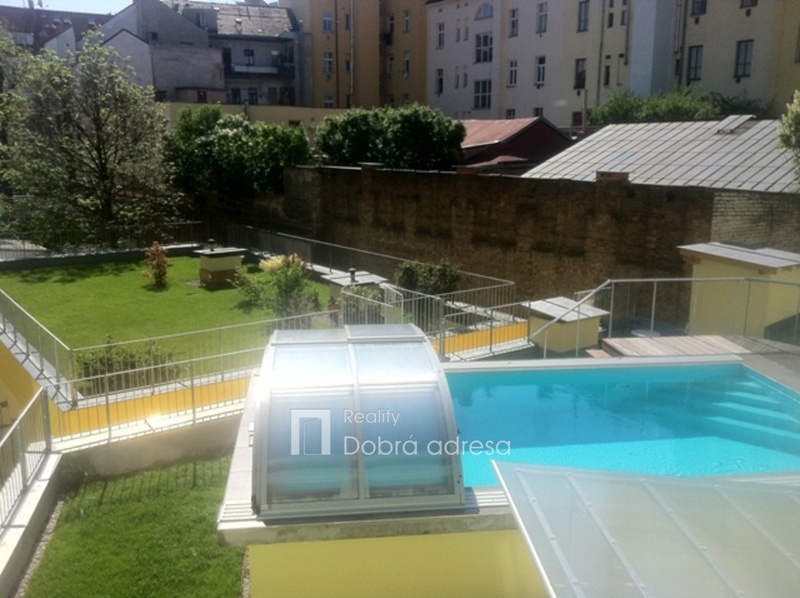 Cena pronájmu: 7.900,- Kč + poplatky. Kauce ve výši jednoho měsíčního nájmu. Nájemníkům je k dispozici ve dvoře domů relax zóna na střeše o ploše 180 m2 a bazén s vyhřívanou slanou vodou (29 st.C) a protiproudem o vel. 7x4 m a hloubkou 1,6.