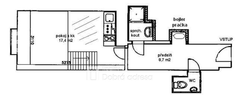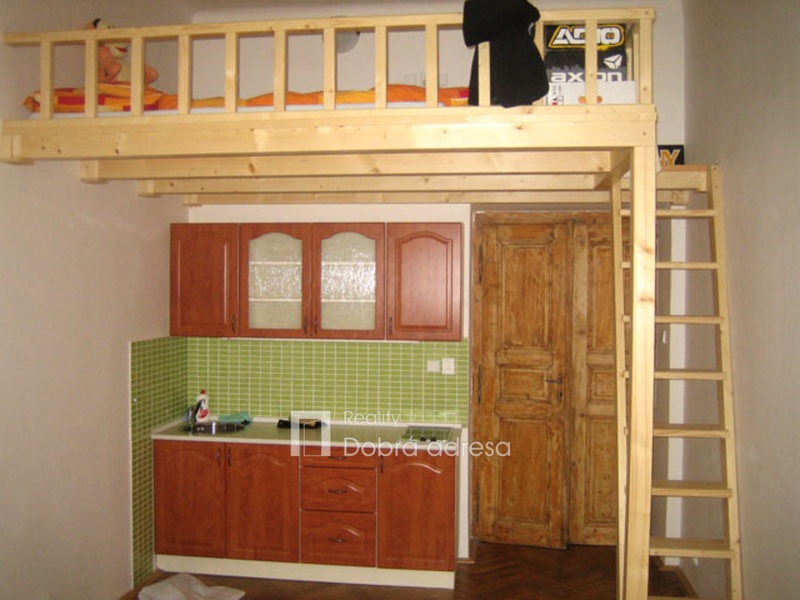 Nabízíme dlouhodobý pronájem zrekonstruované garsoniéry v 1. patře činžovního domu s výtahem. Jedná se o pokoj s kuchyňským koutem a vestavěným dřevěným patrem na spaní o výměře 17 m2 a příslušenství tj. sprchový kout, samostatné WC a předsíň.